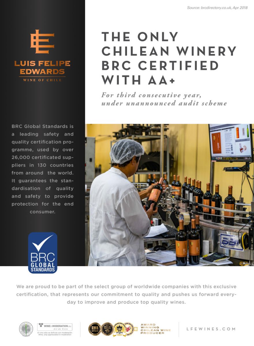 V rámci systému neohlášeného auditu, získalo chilské vinařství Luis Felipe Edwards certifikát BRC AA+.